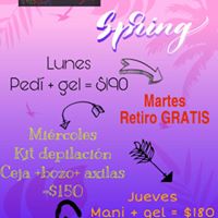 TODO PARA TU BELLEZA Y CUIDADO PERSONAL Te ofrecemos un buen servicio en: ~Uñas de gel y acrigel ~Peinado y maquillaje ~Manicure y pedicure ~Tintes y retoques ~Efectos de luz ~Diseño de ceja (pigmento y depilación) ~Pigmento de pestañas y extensiones para pestañas ~Cortes para dama y caballero ~Maquillajes de fantasía para eventos especiales ~Depilaciones (bigote,ceja,barba,axila y piernas)